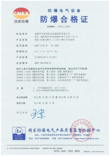 L-CNG增压气化装置防爆合格证